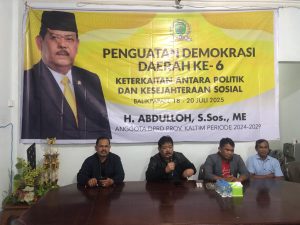 BALIKPAPAN Kabarhaluan.com — Anggota DPRD Provinsi Kalimantan Timur H. Abdulloh S.Sos., M.E kembali melanjutkan Penguatan Demokrasi Daerah (PDD) yang keenam kalinya, kali ini mengangkat tema besar “Keterkaitan Antara Politik dan Kesejahteraan Sosial”.