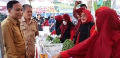 Ahyani Fadianur Asisten II Bidang Ekonomi dan Pembangunan Pemkab Kukar saat mengunjungi stand gerakan pangan murah