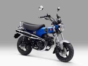 Honda ST125 Dax dengan warna terbaru Pearl Glittering Blue hadir mendampingi model berwarna Pearl Cadet Gray yang masih dipertahankan. Honda ST125 Dax tetap menghadirkan sensasi berkendara yang santai dan menyenangkan, sesuai konsep yang selama ini diembannya.